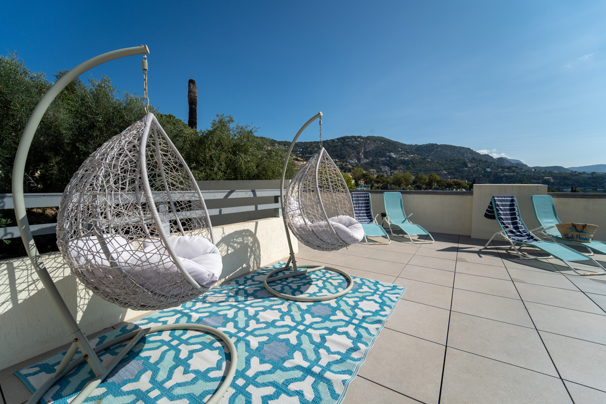 L’appartement de 90 m² a deux chambres à coucher, deux salles de bain, un salon avec un grand balcon (16 m²) ouvert sur la mer, une cuisine équipée et même une buanderie. Sur le toit vous disposez d’une terrasse aménagée de 100 m² avec une splendide vue à 360° mer et montagne. En plus de tout ça, vous avez également à disposition un jardin paysagé de 390 m² avec même une source d’eau et un abri de jardin avec vue mer ( !). L’appartement est desservi par le réseau de fibre optique et vous avez à disposition une télévision, une imprimante et le wi-fi. La piscine est quelques mètres plus bas, toujours avec la vue plongeante sur la mer. Vous disposez également d’un garage privé dans l’immeuble. Vous pouvez venir accompagné de votre animal de compagnie préféré ; il sera aussi bien accueilli que vous, avec son couchage, ses gamelles et ses jouets. Le jardin est clos entièrement. L’appartement est situé à quelques centaines de mètres de la mer et du port de la Darse (5 minutes à pied) et très proche des commerces (5 minutes à pied), des restaurants et de la citadelle de Villefranche. Vous pouvez tout faire à pied : aller à la plage, au restaurant, dans le port, faire les courses au marché ou aux commerces.